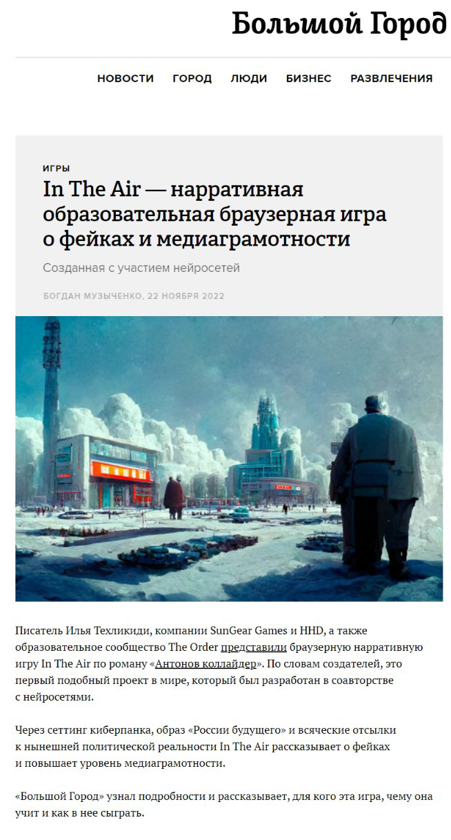 Article about the game in iconic online lifestyle media BG.ru⠀